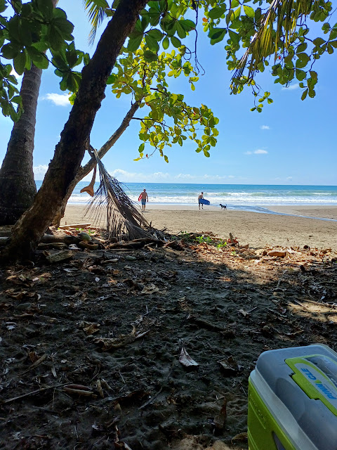 Friday 12/22- Today was the end of year appreciation party for the volunteers that help at the Turtle Reserve. The event was being held at a place owned by the same person that owns the property that the reserve operates on. This place used to be hotel, but is no longer in operation and is only used periodically by the owner and his guests (it’s a really big place, I can’t imagine the guy has THAT many friends!) The owner has also agreed to let the reserve use the very large kitchen and outdoor space for these types of events. Our house was “on the way” for Val and Marshall as they were headed to the gathering so they offered to pick us up. We were the first ones to arrive and were shown around the property. It had potential to be a fully operational hotel again and was in the perfect location not far off the main highway but tucked back enough to be hidden from the sights and sounds of civilization. It also had a massive pool (that we didn't realize we would be welcomed to use so we didn’t bring our suits). David, the final member of Ramie’s turtle walking group, showed up a short time later. The hosts brought out food and beer, but it was still just the five of us. Jokes were made that only the “winners” of the turtle nest hunts were invited to the get together and it would only be us this evening. Eventually, about an hour later, other volunteers slowly filtered in. Since the walking teams don’t really interact with the other teams because each team has their own separate day that they walk, many of the volunteers don’t know each other. We spent most of our time hanging out with Ramie’s team and sitting on the edge of the pool with our feet in the water and our plate of food on our laps. At sunset everyone moved back up to the hotel with it’s amazing view of the ocean to watch the sun go down over the Pacific and, of course, snap a few pictures. Shortly after sunset the bugs started to come out and we decided it was time to head home. It was a very nice way to say thank you to all the volunteers for all the hard work they put in this season.